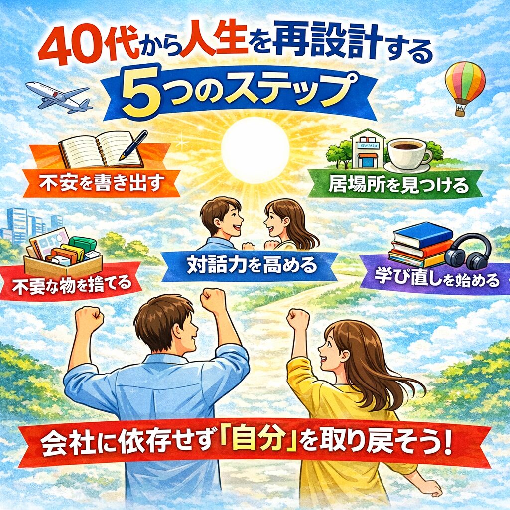 【保存版】40代から人生を再設計する5つのステップ。会社に依存せず「自分」を取り戻す教科書