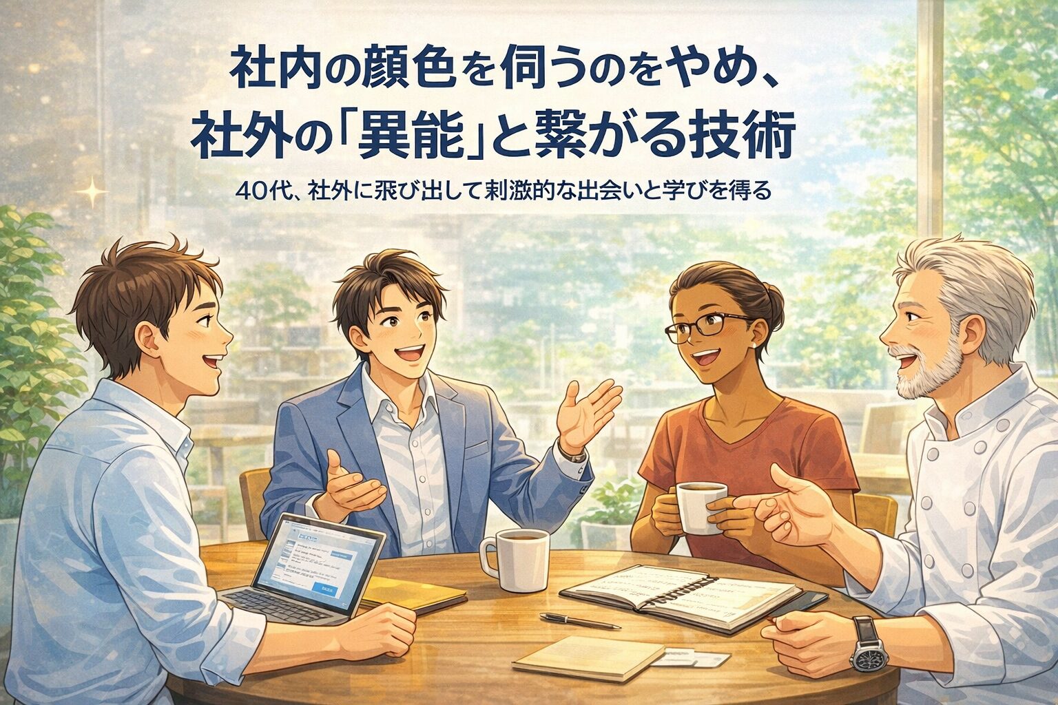 40代こそ、20代の起業家や、全く異なる業界の専門家と話すべきです。彼らの「異能」に触れることで、自分の常識がいかに狭かったかを知り、脳が再起動(アップデート)されます。