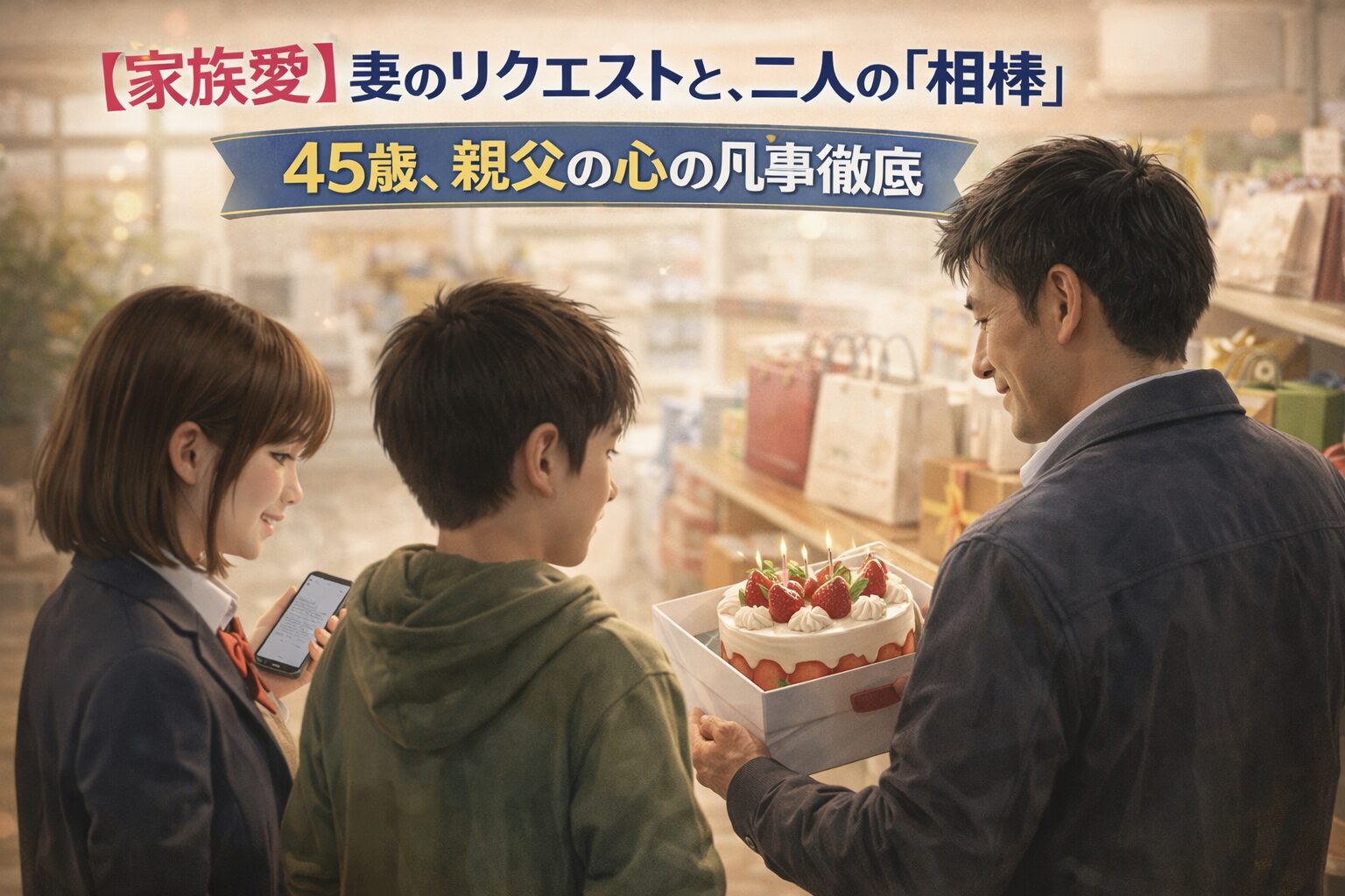 一方で、中1の息子とは二人で買い物へ。 「お父さん、こっちの方が美味しそうだよ」 「お父さん、これはちょっと渋すぎない?」 息子にリードされながら、妻の笑顔を想像して商品を選ぶ。 それは、会社でのどんな会議よりも真剣で、温かい時間でした。